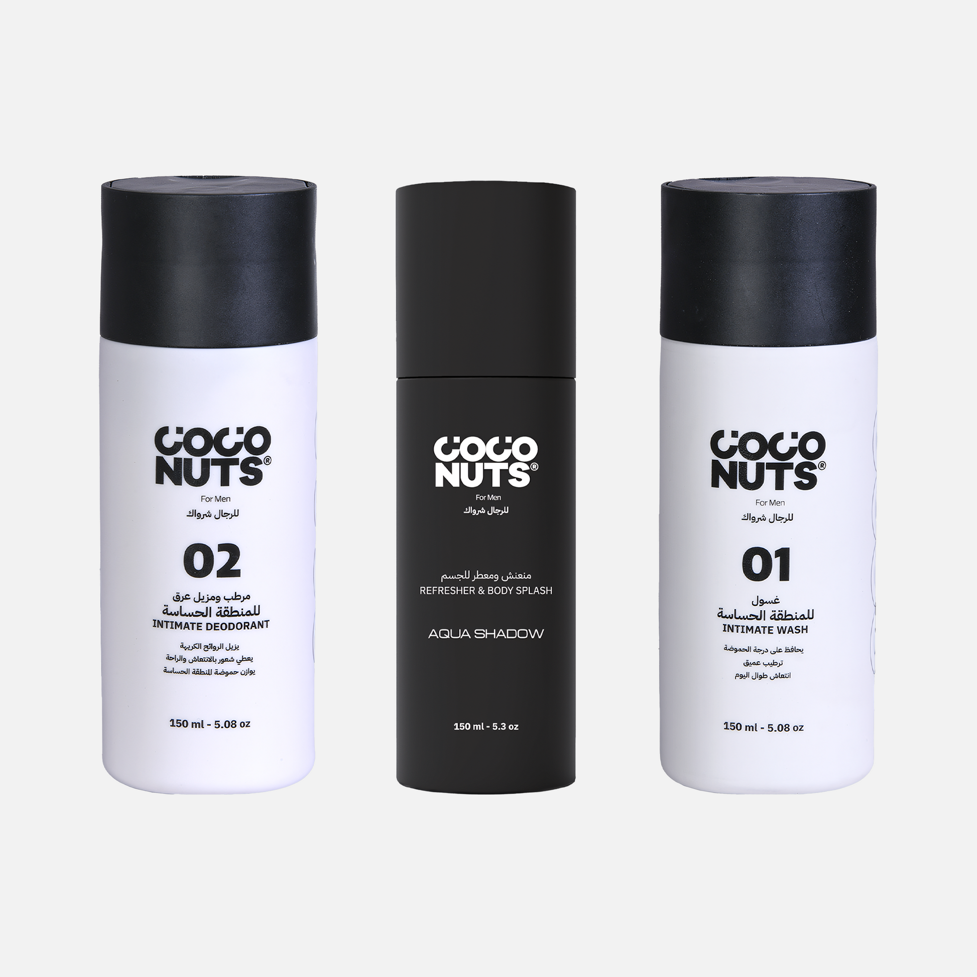 مجموعة منتجات كوكونتس للرجال مصممة خصيصًا للعناية اليومية بالمنطقة الحساسة، وتضم غسولًا لطيفًا وفعالًا، بالإضافة إلى مرطب ومزيل عرق يوفر حماية مستمرة ضد الروائح الكريهة. الغسول ينظف بلطف ويحمي بشرتك من الجفاف، ليمنحك شعورًا بالنظافة والانتعاش طوال اليوم. أما مرطب ومزيل العرق فيجمع بين الترطيب العميق والحماية الفعالة، ليضمن لك انتعاشًا يدوم طوال اليوم ويمنحك الثقة التي تستحقها.