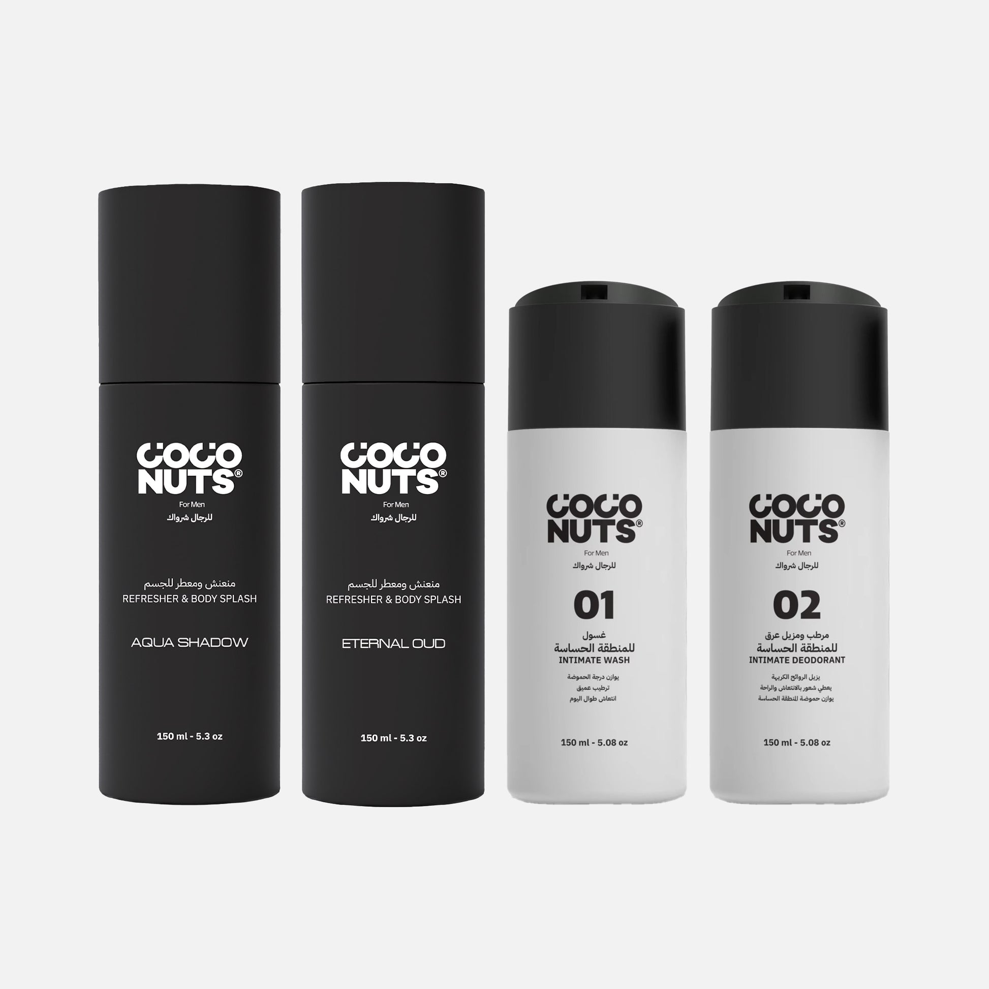 مجموعة منتجات كوكونتس للرجال مصممة خصيصًا للعناية اليومية بالمنطقة الحساسة، وتضم غسولًا لطيفًا وفعالًا، بالإضافة إلى مرطب ومزيل عرق يوفر حماية مستمرة ضد الروائح الكريهة. الغسول ينظف بلطف ويحمي بشرتك من الجفاف، ليمنحك شعورًا بالنظافة والانتعاش طوال اليوم. أما مرطب ومزيل العرق فيجمع بين الترطيب العميق والحماية الفعالة، ليضمن لك انتعاشًا يدوم طوال اليوم ويمنحك الثقة التي تستحقها.